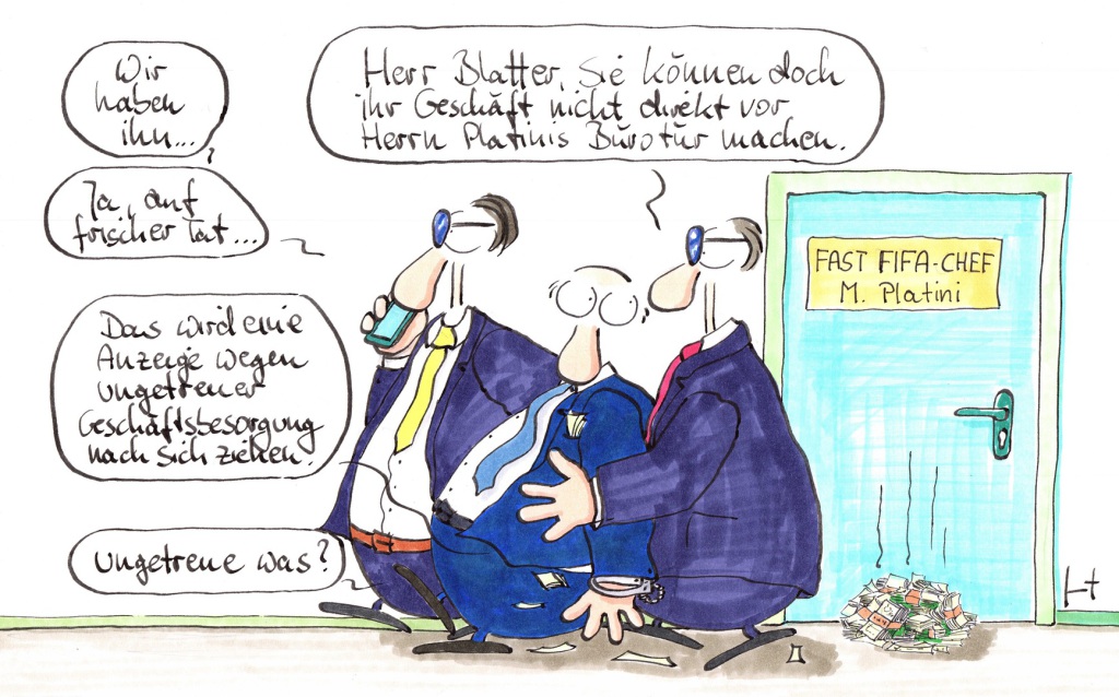 Sepp Blatter lässt sich gerade beim ungetreuen Besorgen eines Geschäfts erwischen